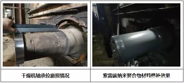 其次,索雷碳納米聚合物材料技術(shù)具有傳統(tǒng)修補(bǔ)技術(shù)所不具備的快捷性、穩(wěn)定性及耐用性。在保證質(zhì)量和使用效果的前提下,我司技術(shù)可以大量減少干燥機(jī)軸承位磨損修補(bǔ)的時(shí)間,同時(shí)避免因拆卸整個(gè)設(shè)備而造成的大量人力、物力及財(cái)力的浪費(fèi),降低企業(yè)停工停產(chǎn)的時(shí)間和因停工停產(chǎn)造成的巨大損失。